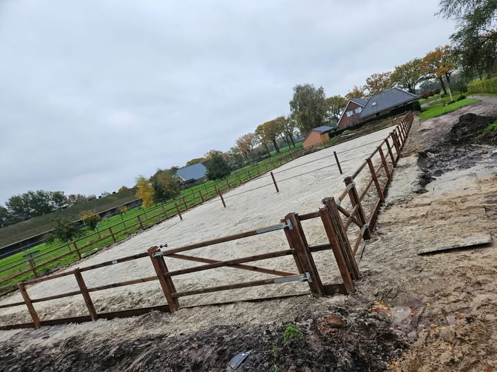Aan de Eursinge, tussen Beilen en Zwiggelte, hebben we een prachtige opschroefomheining geplaatst rondom een rijbak en paddock. Het duurzame hout is behandeld met Nobifix, wat zorgt voor een lange levensduur en een nette uitstraling. Deze oplossing combineert functionaliteit met een esthetische meerwaarde en past perfect in de landelijke omgeving. Een mooie aanvulling waar we trots op zijn!